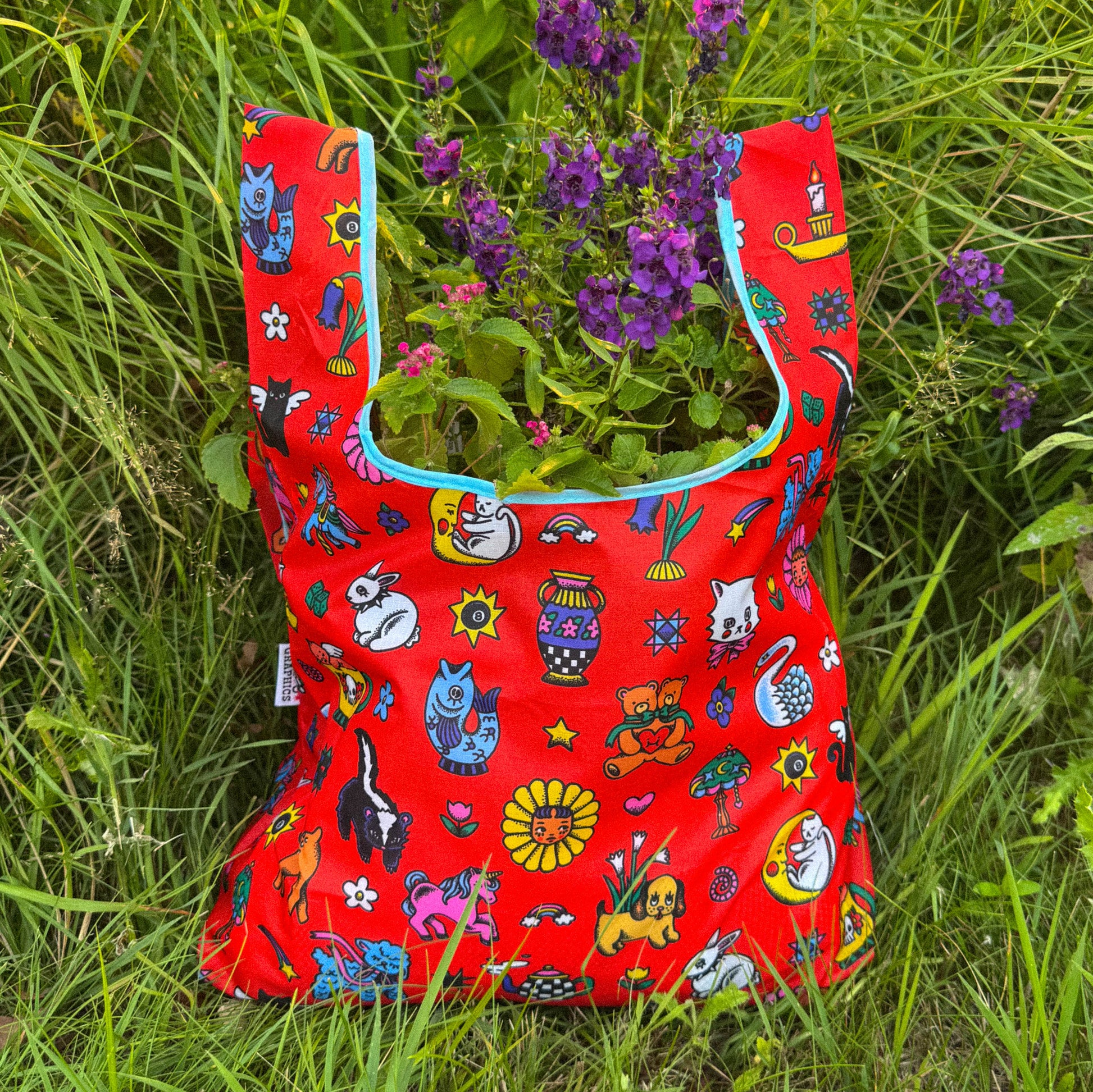This reusable grocery bag adorned with kitschy friends will help carry goodies you acquire throughout your day!
