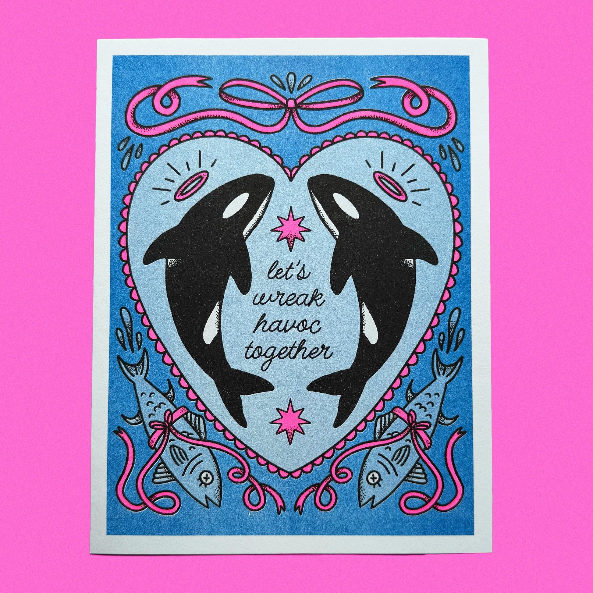 ✦ WHAT IS RISO? Risograph printing is much like screen printing on paper. The risograph machine prints in layers using rice-based ink and this layering process can produce imperfect registration, color variations, and ink textures. These qualities are all apart of the riso charm and contribute to your unique print.